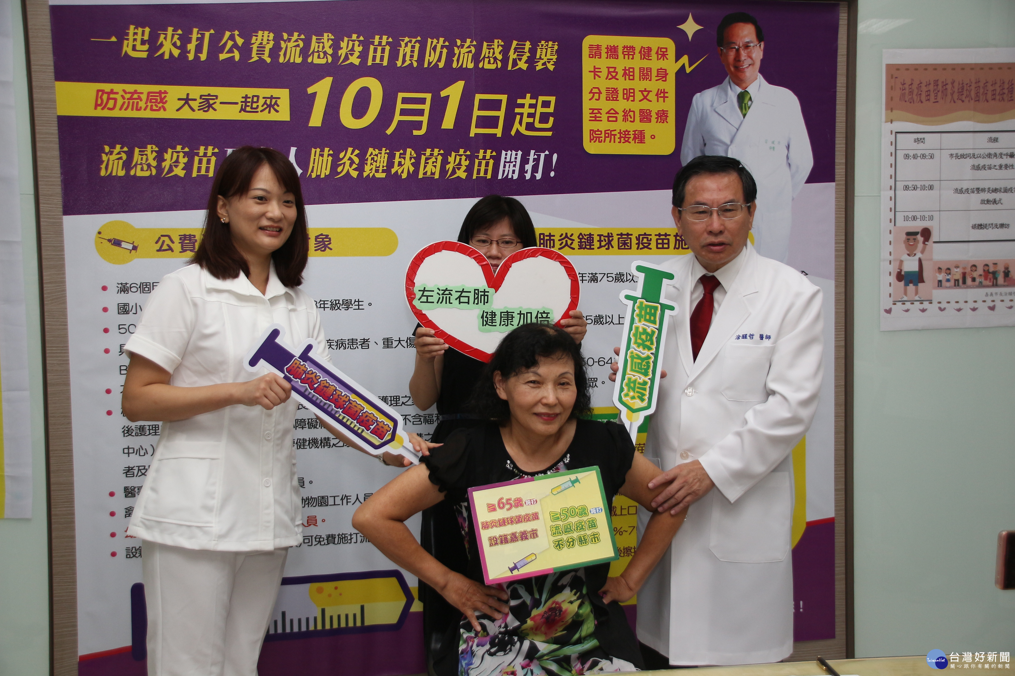 進入冬季流感高峰期,嘉義市政府備妥91000劑流感疫苗,將在10月1日開打!施打對象除原有族群外,今年首度擴大資格,新增6個月內嬰兒父母,幼兒園托育人員及托育機構專業人員。另為避免長者因感染肺炎鏈球菌,導致嚴重併發症或死亡。年滿65歲或50-64歲有慢性高風險疾病未曾接種者,並設籍於嘉市的民眾,可與流感疫苗同時、分不同部位接種,左「流」右「肺」保健康。