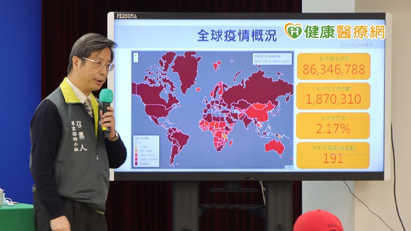 指揮中心監測資料顯示,全球累計86,346,788例確診,分布於191個國家/地區;病例數以美國21,174,795例、印度10,356,844例、巴西7,810,400例、俄羅斯3,284,384例及英國2,774,479例為多;病例中1,870,310例死亡,以美國362,891例、巴西197,732例、印度149,850例、墨西哥127,757例及義大利76,329例為多。
