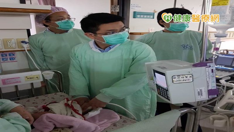 陳文發醫師正為新生兒做髖關節超音波檢查。
