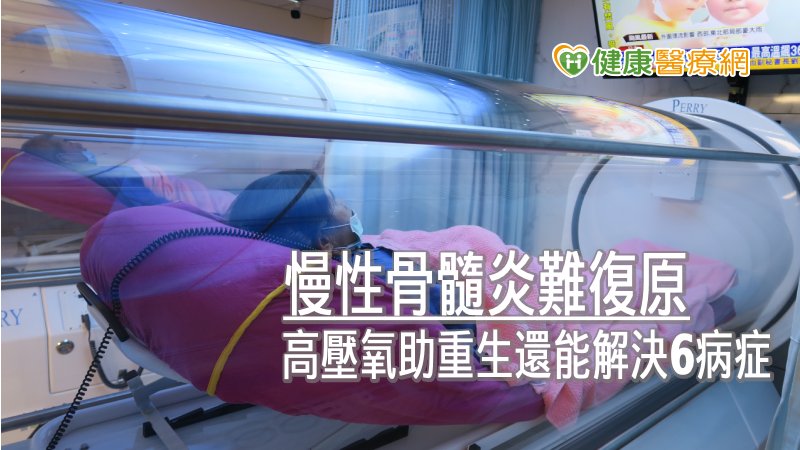 去年底該院高壓氧中心成立後,原本只有1台的治療艙供不應求,在今年7月再添購2台後,目前共3台治療艙服務患者,高壓氧的效能,包括神經系統、傷口問題、眼耳鼻喉科疾病、保健及醫學美容、骨外科問題、其他適應症等6大類,在各種不同病症的患者之中,慢性骨髓炎在半年就已累積數十起治療成功的案例,成效良好,陳柏辰主任呼籲,已經失去治療信心的慢性骨髓炎患者不應放棄重拾生活步調的機會。