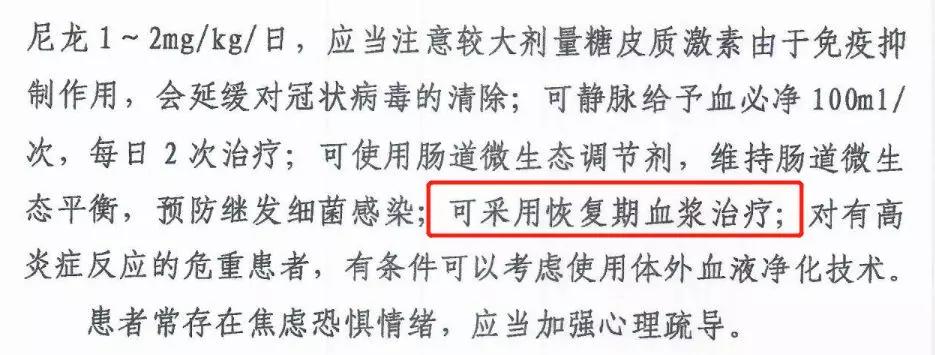 在2月8日國家衛健委發布的《新型冠狀病毒肺炎診療方案(試行第五版 修正版)》中,關於新冠肺炎的治療,也提出“可採用恢復期血漿治療”。
