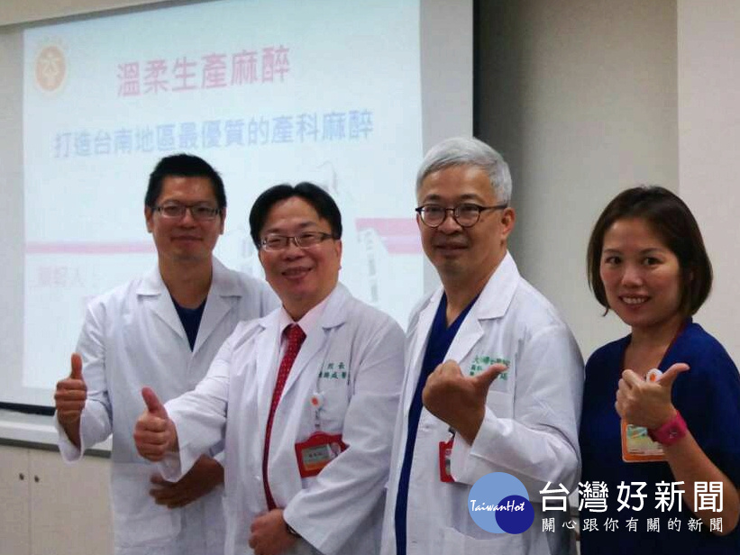大安婦幼醫院陳勝咸院長(左2),力推「減痛分娩」的溫柔生產,緩解產婦的恐懼痛苦,確保母體和胎兒安全。