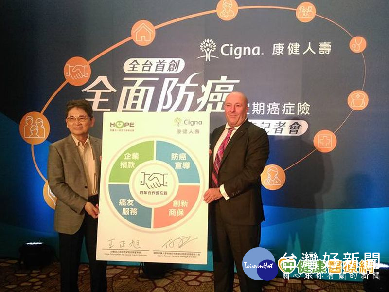 人壽公司宣布推出「全面防癌」定期保險,提供涵蓋癌症復發、轉移定額一次給付的醫療保險,理賠金額最高可達410萬元,並與癌症希望基金會簽署4年合作備忘錄,承諾提供4年捐款500萬元;且於今年12月底前,每銷售一張全面防癌定期保險,就額外捐贈100元用於支持癌症預防及癌友關懷服務。