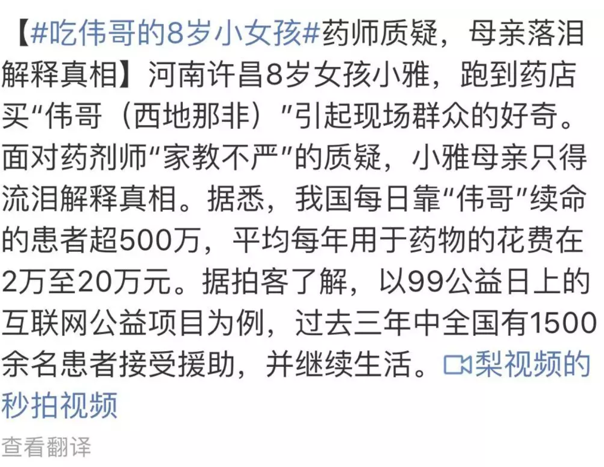 近日,河南許昌一位8歲的女孩小雅,獨自去藥店購買“偉哥”,由此和藥店藥師有了這樣一段對話視頻,引起熱議。
